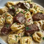 - Combine Tortellini and Steak: Slice steak and add to sauce with drained tortellini. Toss to coat.