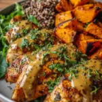 This dish embodies the essence of home-cooked love. It celebrates the harvest flavors of fall, all while providing a comfort that can cheer you up on the toughest days. The crispy edges of the roasted sweet potatoes provide a delightful contrast to the tender chicken, while the subtle nuttiness of quinoa or rice rounds out the bowl perfectly. Every ingredient plays its part, coming together in an explosion of flavors that isn’t just food—it’s a full sensory experience that nourishes the soul.