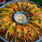 Knusprige Mini-Tacos gefüllt mit würzigem Rinderhackfleisch, frischem Gemüse und schmelzendem Käse – ideal für gesellige Abende.