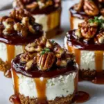 5. Drizzle with Sauces: Drizzle caramel and chocolate sauce artfully over the tops of the cheesecakes. Sprinkle with chopped pecans for that final delightful crunch.