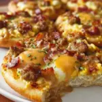 There’s something undeniably captivating about the first bite of a warm breakfast pizza. As you lift a slice from the pan, the golden crust offers a satisfying crunch, giving way to the melty layer of cheese that stretches as you pull it apart. The aroma intertwines the rich scent of sausages with the gentle earthiness of scrambled eggs, creating an enticing symphony of breakfast flavors. Each bite brings together the comforting taste of home and the joyous delight of an indulgent treat. This isn’t just food; it’s a morning celebration—an invitation to embrace a beautiful day ahead.