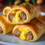 Delicious and easy-to-make breakfast roll-ups filled with fluffy eggs and savory sausage, wrapped in golden crescent dough.