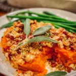 Rich and velvety-smooth, the layers of savory sweet potato casserole transport you to a world of comfort and satisfaction. Each bite reveals a harmonious blend of flavors—sweet yet earthy, creamy but with a delightful crunch. As the casserole bakes, aromatic notes of roasted sweetness mingle with the warm buttery scent of toasty walnuts and breadcrumbs wafting through the kitchen. You feel the anticipation build, your stomach rumbling at the thought of that golden-brown topping beckoning you to dive in.