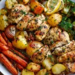 A vibrant and flavorful sheet pan meal featuring tender lemon herb chicken and a medley of colorful vegetables, perfect for busy weeknights.