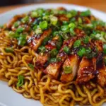 The comforting aroma of garlic sizzling in hot oil wraps around you like a warm hug, awakening your senses and teasing your taste buds. Almost immediately, the kitchen transforms into a haven filled with flavors that promise a deliciously satisfying meal. The scene is set: glossy strands of noodles coated in a luscious, sticky sauce glimmer invitingly on a plate, waiting to be devoured. Each bite of chicken is juicy and tender, melding beautifully with the crispness of green onions that offer a refreshing crunch against the backdrop of savory goodness. As you take that first forkful, the blend of sweet, salty, and umami flavors dances on your palate, creating a symphony of taste that is both exhilarating and comforting.