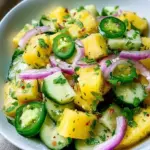 A refreshing salad that combines vibrant pineapple, crunchy cucumber, and zesty lime for a symphony of summer flavors.