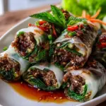 Delicious rolls filled with seasoned beef, fresh vegetables, and aromatic herbs, perfect for gatherings or a cozy meal.