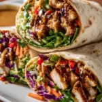Vibrant and flavorful wraps filled with marinated chicken, fresh vegetables, and a creamy peanut sauce, perfect for any occasion.