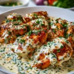 Picture this: You sit down with family or friends, and as you cut into the chicken, the creamy sauce glides over, revealing steam rising with each slice, begging to be savored. The first bite bursts with rich flavors; the chicken is succulent, and the creaminess envelops your palate, settling into a comforting embrace. Every forkful is both satisfying and indulgent, making you feel like you’ve traveled to a charming Turkish bistro without leaving your home. This dish isn’t merely food; it’s a heartwarming hug that you can taste, feel, and share.